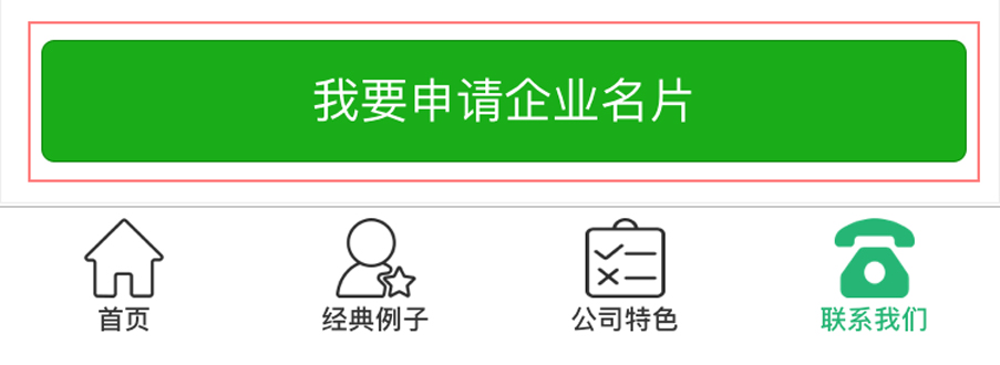 三、進入聯(lián)系我們頁面,點擊底部的我要申請企業(yè)名片按鈕