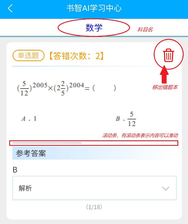 錯(cuò)題本列出來我們測試錯(cuò)的題,如果已掌握,也可以移除錯(cuò)題本。