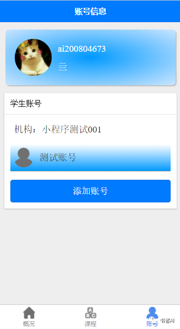 1.2.2 已經(jīng)綁定學(xué)生賬號(hào)時(shí),就會(huì)顯示學(xué)生概況。包含頭像,名稱,